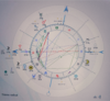 A partir de vos coordonnées de naissance, (jour, heure, lieu), je monte votre thème natal. Le montage du thème se fait grâce à un logiciel professionnel qui produit une carte du ciel comme celle que vous voyez ci-dessus. Mon travail d'interprétation commence alors et reste, lui, artisanal. Sa finesse est le fruit de la maturation nécessaire à sa définition en amont de la consultation. Je joins à ce travail, durant la consultation, l'intention de vous accompagner au mieux et l'inspiration, au regard de vos questionnements, vers votre autonomie dans la maîtrise de votre chemin de vie.